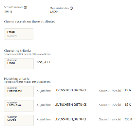 If your business requires records with different labels not to be merged, update your clustering rules as follows: