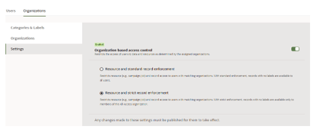 Strict Enforcement: Records with no labels will be accessible only to members of the All Access organization.