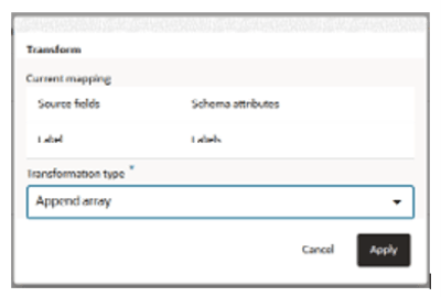 If you include labels as strings in the ingest file, you can use the “append array” transformation rule to populate thearray-of-strings