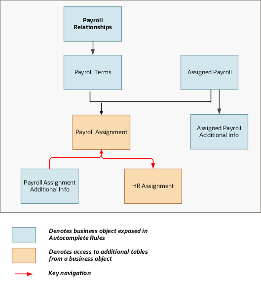 The Payroll Assignment object is a part of Payroll and closely linked to the When and Why object.