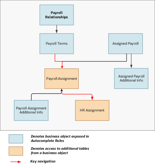 To navigate to the Payroll Assignment traversing row variable on Get Payroll Assignment. For example, to navigate to HR assignment, first you get a handle to Payroll Assignments. |
