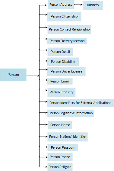 The Person family of objects comprises of the Person object at the parent level and a 1 to 1 relationship between the parent Person object and the child Person Detail object.