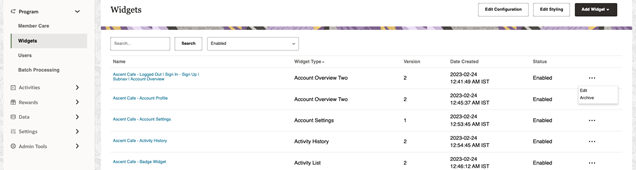 When managing your widgets catalog, you can archive widgets within your program. This helps to better organize the widgets and remove what is no longer in use from within the Control Center management tool.