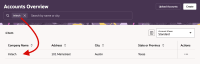 , then click Accounts. - Type a string of letters or numbers corresponding with an account's Company Name or City account field values into the Search bar in the upper-right corner. This search is not case-sensitive.