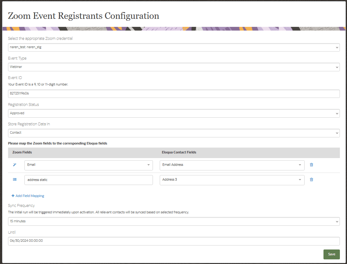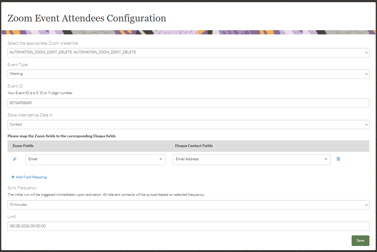 - Map attendee information from Zoom fields to Eloqua Contact fields.