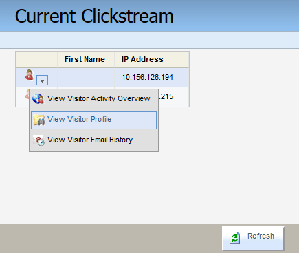 Click the drop-down arrow next to a visitor, then click View Visitor Profile.