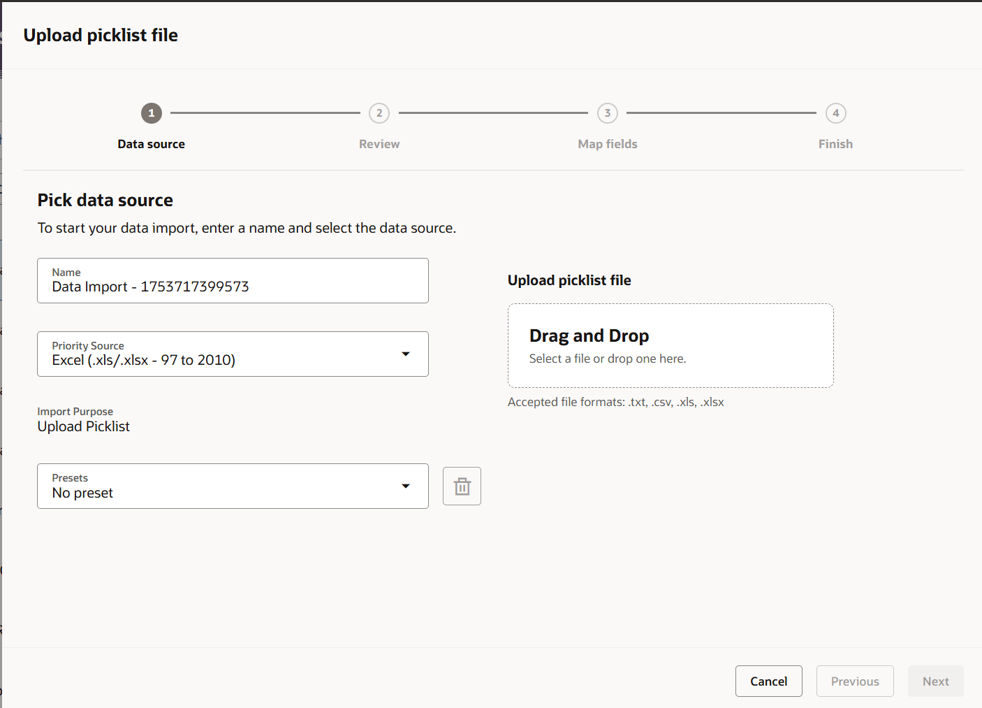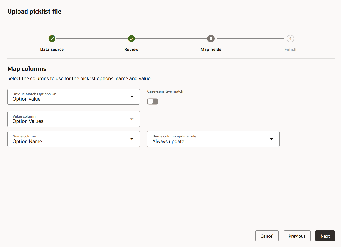 - Map the fields in your file to the picklist fields.