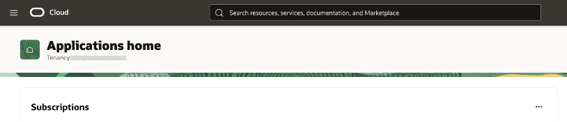 - After logging in, verify you were directed to the Applications home console, and that your tenancy shows at the top left.