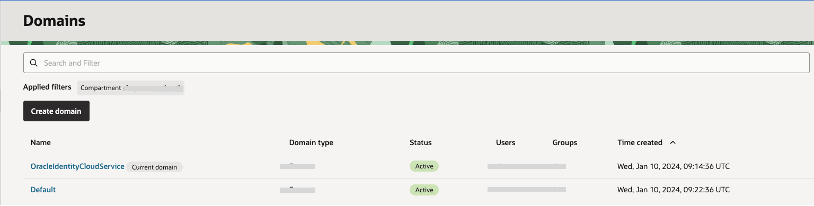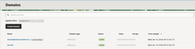 - From the list of domains click OracleIdentityCloudService. The domain details page opens.