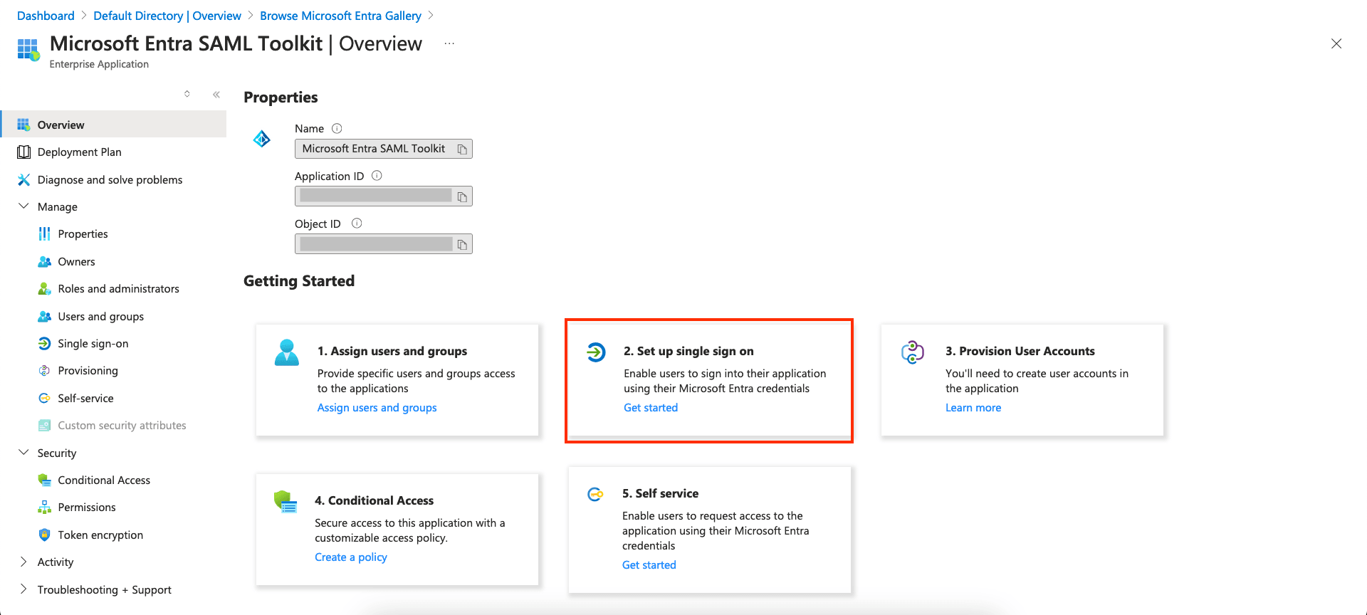 - Navigate to Set up single sign on, and click on Get Started.