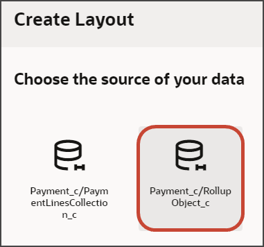 resourceparameter with the following code:<oj-vb-fragment-param name="resource" value="[[ {'name':'Payment_c', 'puid': $variables.puid, 'id': $variables.id, 'endpoint': $application.constants.serviceConnection ,'extensionId': $application.constants.extensionId, 'rollup': 'RollupObject_c'} ]]">Be sure to replace all attribute values with the appropriate values for your scenario.
