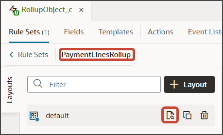 On the RollupObject_c layout tab, click + Rule Set to create a new rule set for the layout.