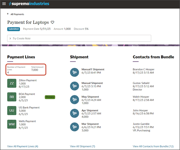 You should now see the Payment Lines panel on the detail page, with a region for rollups.
