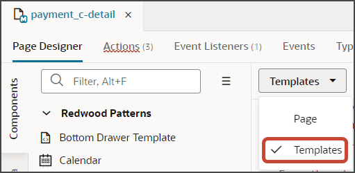 Click the payment_c-detail tab, then click the Page Designer subtab.