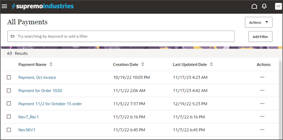 https://<servername>/fscmUI/redwood/cx-custom/payment_c/payment_c-list -