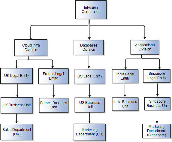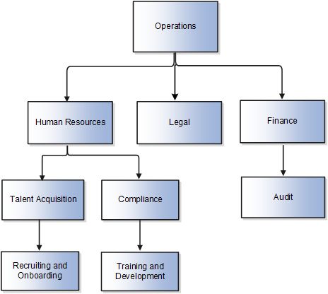 An organization tree is a hierarchical representation of your various organizational entities. You can select any organization including divisions, legal employers, business units, departments, and so on to create your organization tree. You can create versions of organization trees but only one tree version is active at a time. An organization can’t be added more than once in the same tree version.