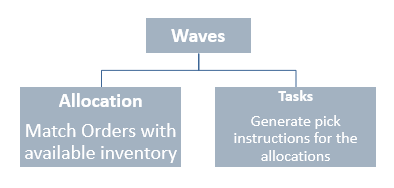 Users must execute Waves in order to allocate orders with allocatable inventory in the warehouse. Each wave creates an allocation and a series of tasks.