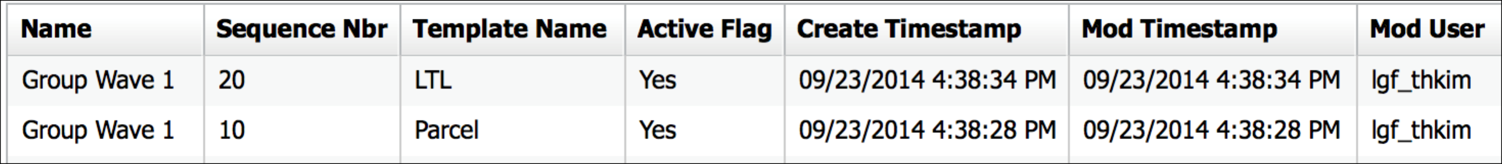 - The figure above displays the sequence wave templates that will run whenever “Group Wave 1” is executed. To add a new wave template to the list, click the Create () button and populate the necessary fields.