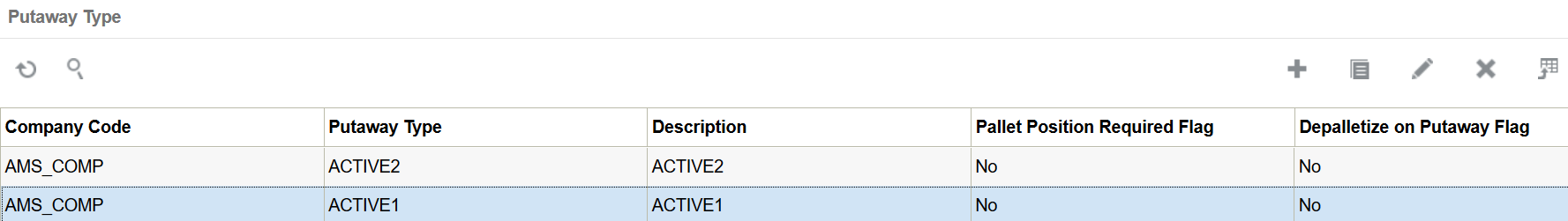 Go to Putaway Type UI and define 2 putaway type ACTIVE1 and ACTIVE2.