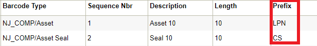 The company only accepts barcodes of prefix “LPN” and “CS”, each of length
