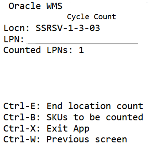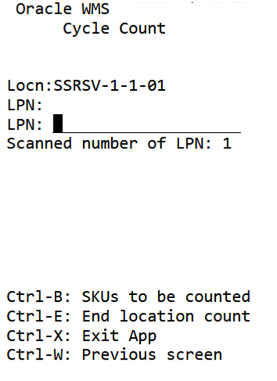 - After counting all SKUs, press Ctrl-P: End LPN Content Count hotkey to