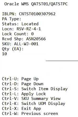 Note: If the scanned LPN is a multi-SKU LPN, hit “Ctrl+D” hot key to view the remaining inventory line (SKU) details.