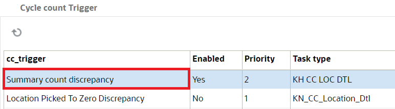 - Configure the task type for either CC-LOCATION or CC-LOCATION-DTL for the Location Picked to Zero Discrepancy CC trigger.