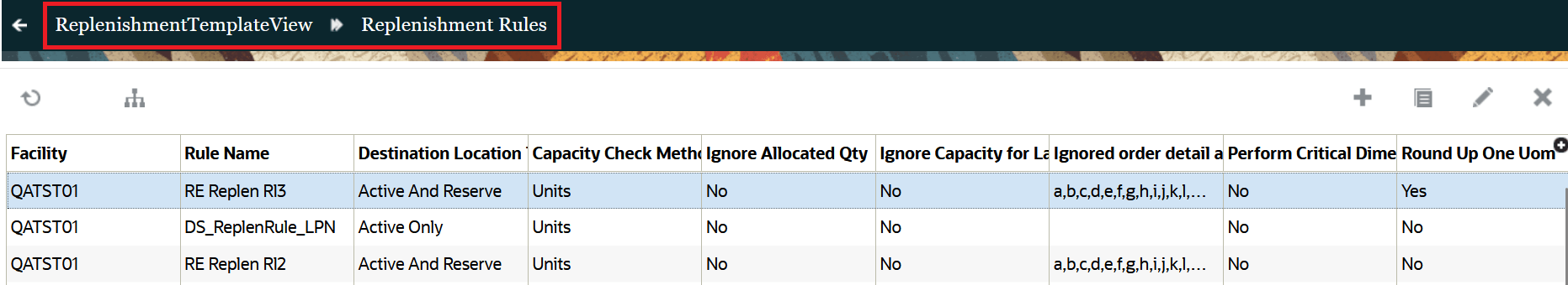 1. Go to the Replenishment template UI > Replenishment Rules button.