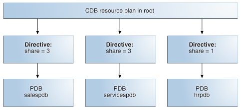 Directives in a CDB plan specify how to allocate resources to the PDBs in the CDB. In a CDB plan, you can define directives explicitly for none, some, or all of the PDBs in a CDB. Each CDB plan also has a default directive for PDBs. When a CDB plan is the active plan, the default directive is used for any PDB that does not have directives explicitly defined for it.