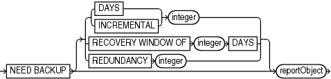 Reports data files for which there are not sufficient backups to satisfy a recovery window-based retention policy for the specified number of days, that is, data files without sufficient backups for point-in-time recovery to any point back to the time Note: