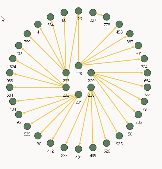 The radial layout displays the dependency chain of a graph by using an outwards expanding tree structure. It can be especially useful if the graph data has a hierarchical structure and contains many children for each parent vertex.
