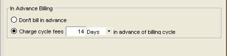 You can set up cycle forward rates to charge cycle forward fees in advance. This enables you to charge all or a portion of the next cycle fee in the current bill.