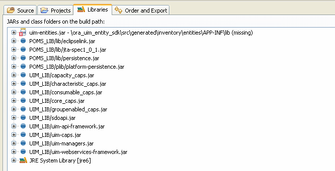 Upon installation of UIM, every entity manager that is defined in the metadata has a corresponding entity manager and implementation of the manager. For example, based on the excerpt shown in Example 4-19, the following classes exist: