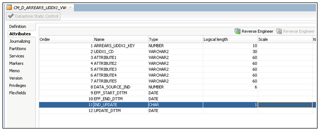 17. Click the ARREARS_UDDX1_KEY column in the target datastore. In the Property Inspector, enter the following code: