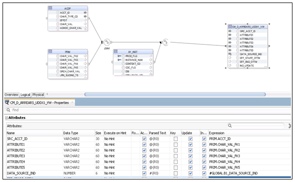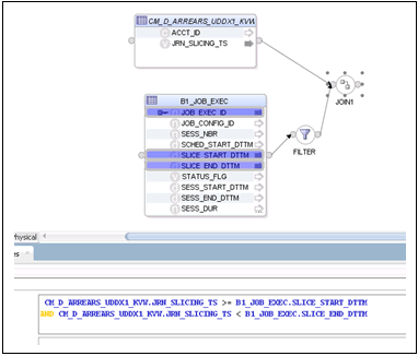 14. Drag the Join component from the Component palette and join B1_JOB_EXEC with the CM_D_ARREARS_UDDX1_KVW key view.