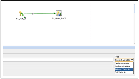 5. From the Global Objects section, drag the B1_JOB_ID and B1_HIGH_DATE variables into the editor.