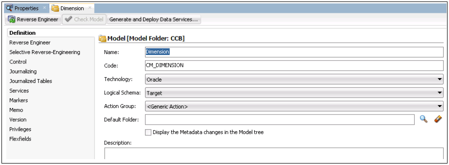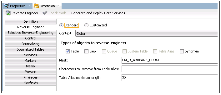 2. On the Oracle Data Integrator client, navigate to User Customization > <product name> > Dimension.