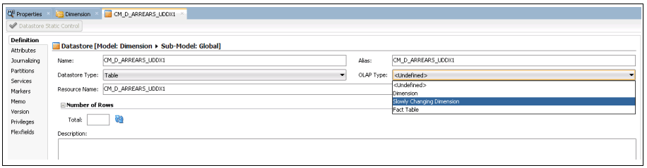16. Navigate to Models > User Customization > CCB > Dimension. Drag and drop the CM_D_ARREARS_UDDX1 target table on the Logical Design pane.