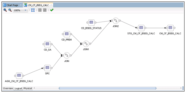 Each bill generated in Oracle Utilities Customer Care and Billing has multiple bill segments, and each bill segment has multiple calculations with different billing. The CM_CF_BSEG_CALC fact has three dimensions - Service Agreement, Premise, and Service Agreement Status.