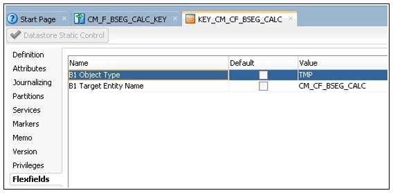 4. In the datastore editor, enter “KEY_CM_CF_BSEG_CALC” and “KEY_#GLOBAL.B1_JOB_ID” in the