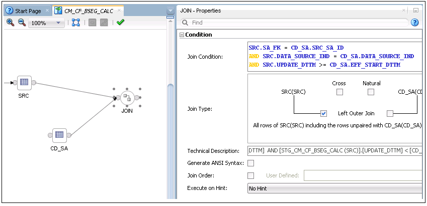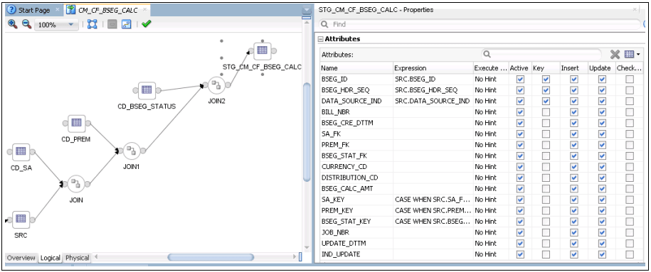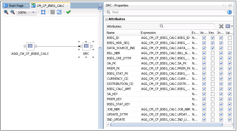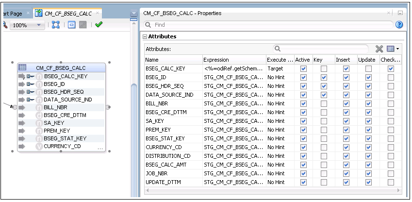 23. Click STG_CM_CF_BSEG_CALC staging table. The respective Properties window is displayed.