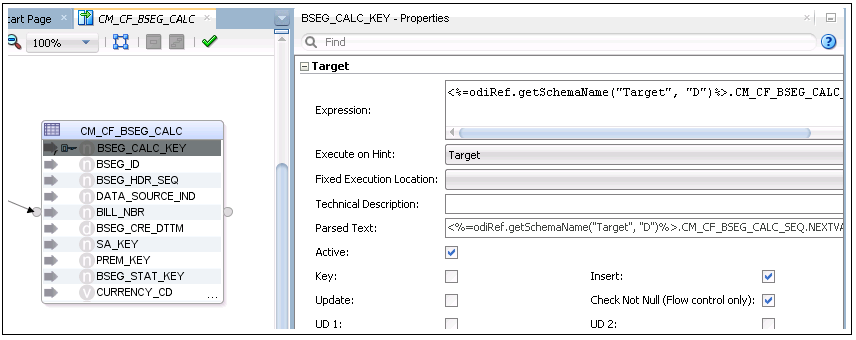 23. Click STG_CM_CF_BSEG_CALC staging table. The respective Properties window is displayed.