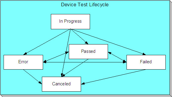 Passed The system automatically changes the state of an In Progress device test to Passed when an operator indicates such on the device test page. Note, if the device test's test type has a validation algorithm, the test must pass the validation rules embodied in the algorithm before the test will become Passed. If the device test's test type does not use a validation algorithm, the test is assumed to pass when the operator indicates such.