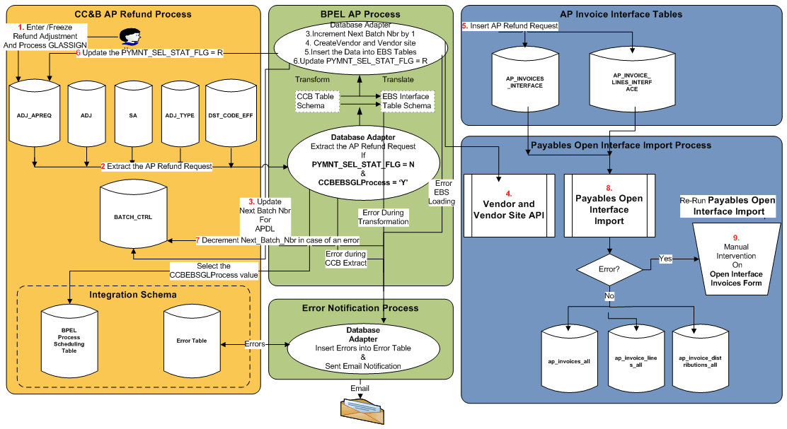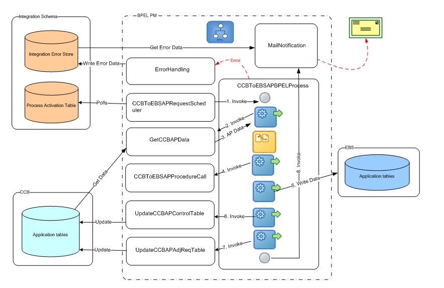 CCBToEBSAPBPELProcess | Main process of the AP Integration. Gets the AP Data from Oracle Utilities Customer Care and Billing and inserts into Oracle E-Business Suite. |