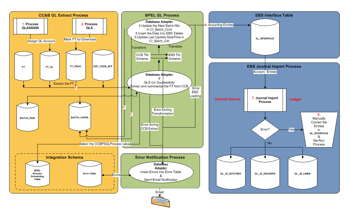 CCBToEBSGLBPELProcess | Main process of the GL Integration. Get the GL data from Oracle Utilities Customer Care and Billing and inserts into Oracle E-Business Suite |