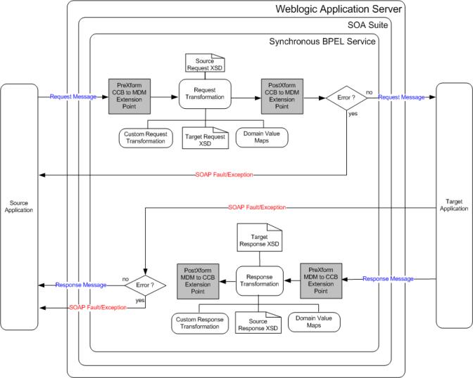 • Transforms the response message coming from the target application (Oracle Utilities Meter Data Management) to the source application’s (Oracle Utilities Customer Care and Billing) format