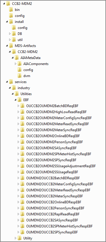 This folder includes the subfolders such as bin, config, install, MDS-Artifacts, and services (also includes wrapper composites).