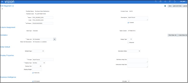 Note: All attributes for distribution should have the same attribute for it to flow from Purchase Requisition to Purchase Order and Invoice.