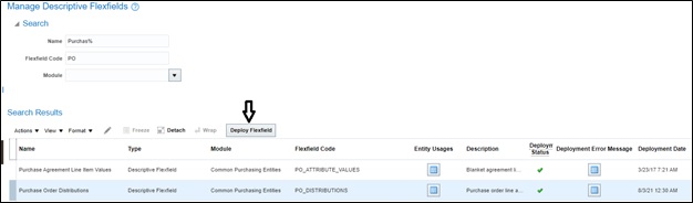 1. Navigate to Setup and Maintenance > Search > Manage Descriptive Flexfields.