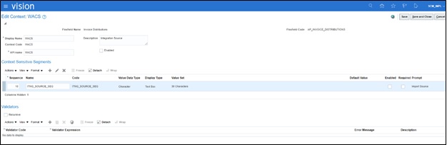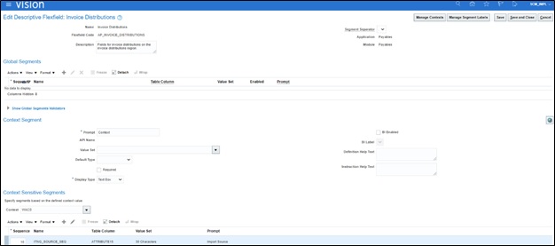 Transfer PO Distribution Additional Information setup is complete to copy the PO distribution DFF values. See the following figure.